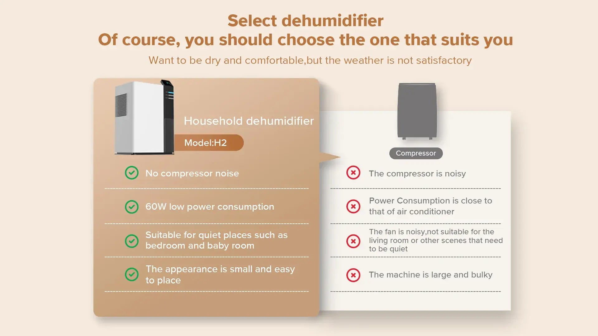 Use high-efficiency dehumidification technology to extract moisture from the air to make your room feel more comfortable.